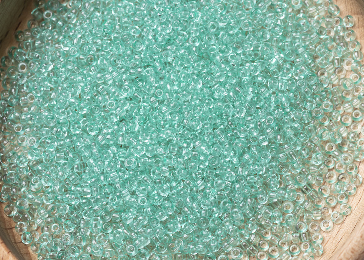 Бисер Чехия круглый 10/0 50 г 01264 прозрачный бледный светлый бирюзово-зеленый зольгель окрашенный